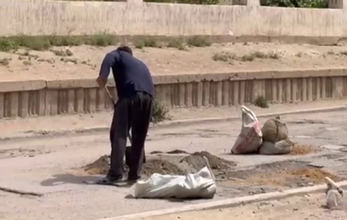 По словам автора видео, на кадрах житель 45 дома 14 микрорайона, который не стал дожидаться ремонта от властей и своими силами залатал яму на дороге.