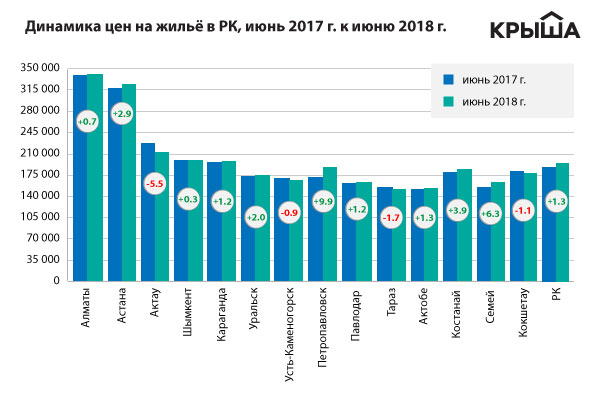 Портал Krisha.kz проанализировал изменение цен за шесть месяцев текущего года и сравнил с показателями за тот же период 2017 года.