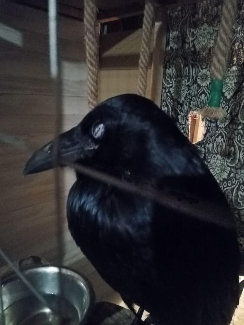 В Актау таких птиц не разводят, поэтому начались долгие поиски. Через форумы, заводчиков и интернет-магазины выбор пал на московского продавца. Но пандемия изменила планы – границы закрылись. С заводчиком договорились, что птенец будет из следующего помета. Так, после карантинных послаблений на автомобиле через тысячи километров в дом к Евгении приехал ворон Бран.