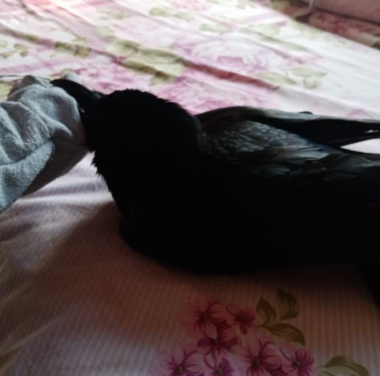 Если в гостиной допоздна смотрим телевизор, он сидит и смотрит с нами, а потом до обеда спит. Подстраивается под наш режим. На работу собираемся утром, а он не шелохнется, голова под лопатками, дрыхнет. Как будто не ворон, а кот, - рассказывает Евгения.