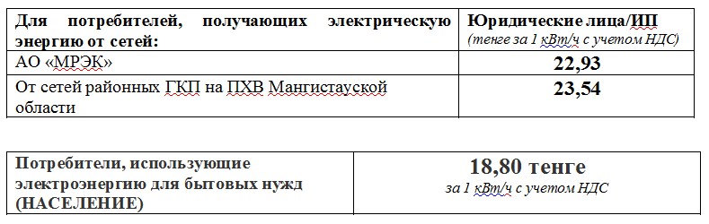 Информируем вас о том, что приказом Министерства энергетики Республики Казахстан № 243 от 29 июня 2020 года «О внесении изменения в приказ Министра энергетики Республики Казахстан от 14 декабря 2018 года №514 «Об утверждении предельных тарифов на электрическую энергию» изменены предельные тарифы на электрическую энергию. С 01 июля т.г. предельный тариф электрической энергии, производимой ТОО «МАЭК-Казатомпром», составит - 13,10 тенге за 1 кВт/ч без учета НДС.