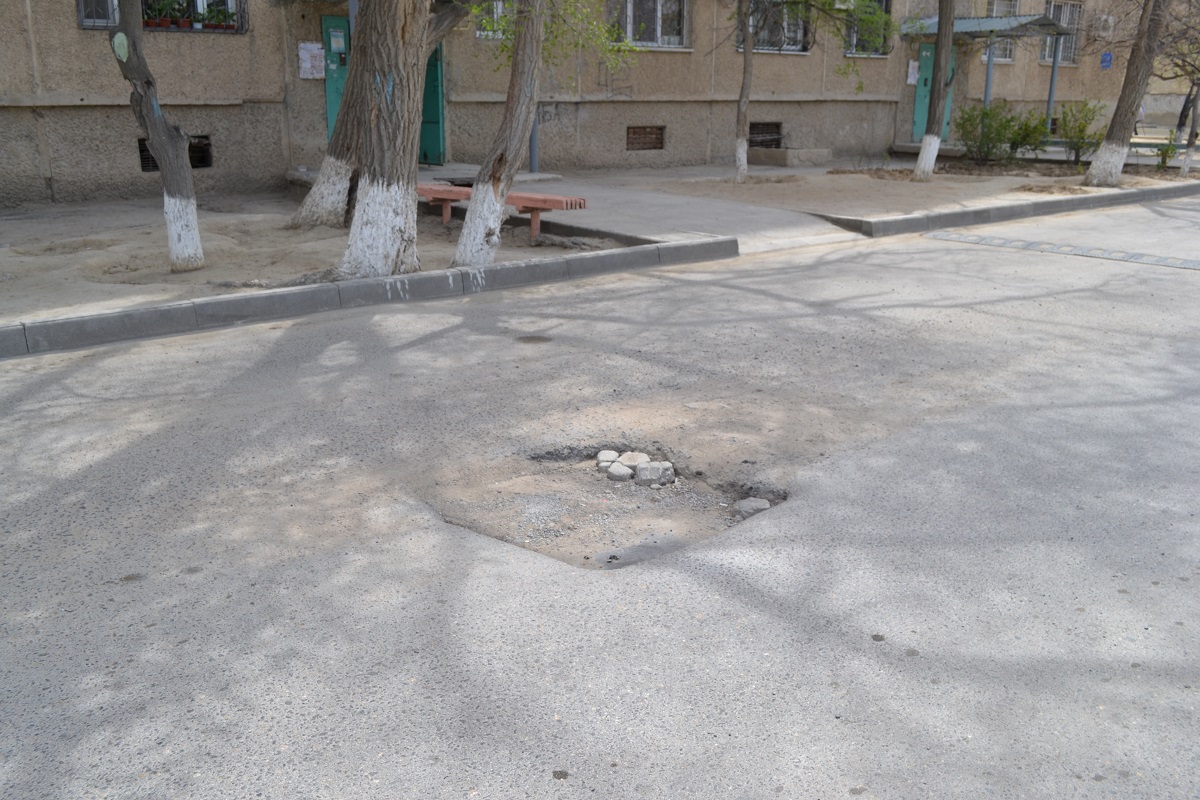 В апреле в Актау начались ремонтные работы на внутримикрорайонных дорогах. На данный момент ямочный ремонт проводят в 14 микрорайоне. Но в городе до сих пор остались места, где дорожное полотно не менялось годами.