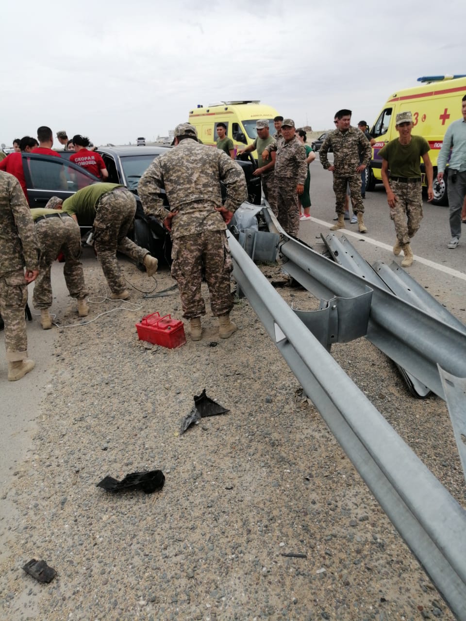 Дорожно-транспортное происшествие случилось сегодня, 21 июня, на трассе Актау-Жанаозен. Очевидцы запечатлели последствия аварии с участием легкового автомобиля марки Lexus GS 300. По кадрам видно, что водитель въехал в разделитель дорог, что привело к летальному исходу мужчины.