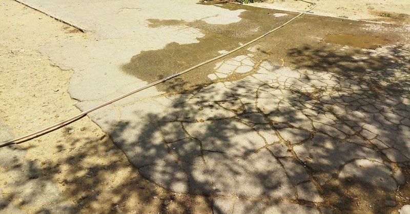 Жилец дома №35 снял на видео, как из пробитого шланга для полива протекает вода, образуя лужи на асфальте у дома №29.