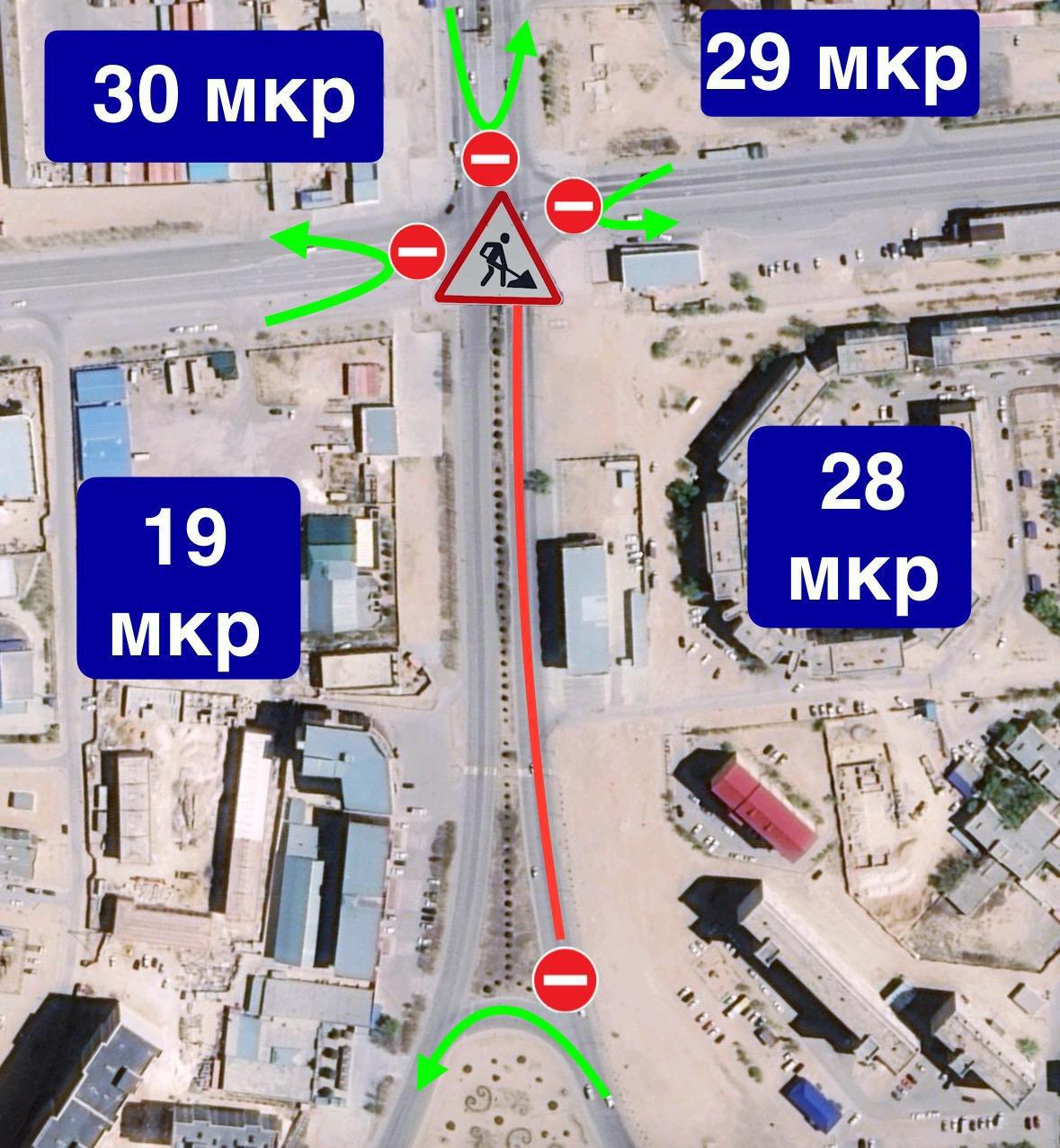 В областном центре временно перекроют дорогу на перекрестке между микрорайонами 30, 29, 19 и 28, сообщает Центр общественных коммуникаций со ссылкой на пресс-службу акимата города.
