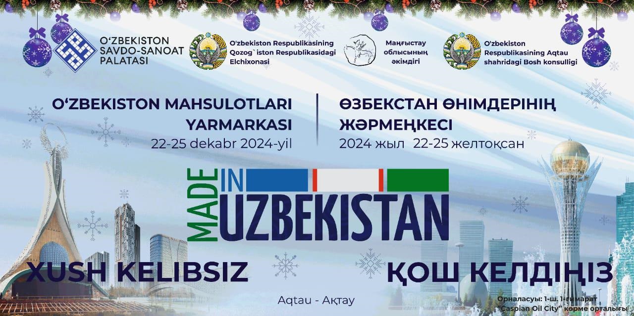 В Актау с 22 по 25 декабря пройдет ярмарка продукции «Made in Uzbekistan». Жителей и гостей области приглашают принять активное участие в ярмарке.