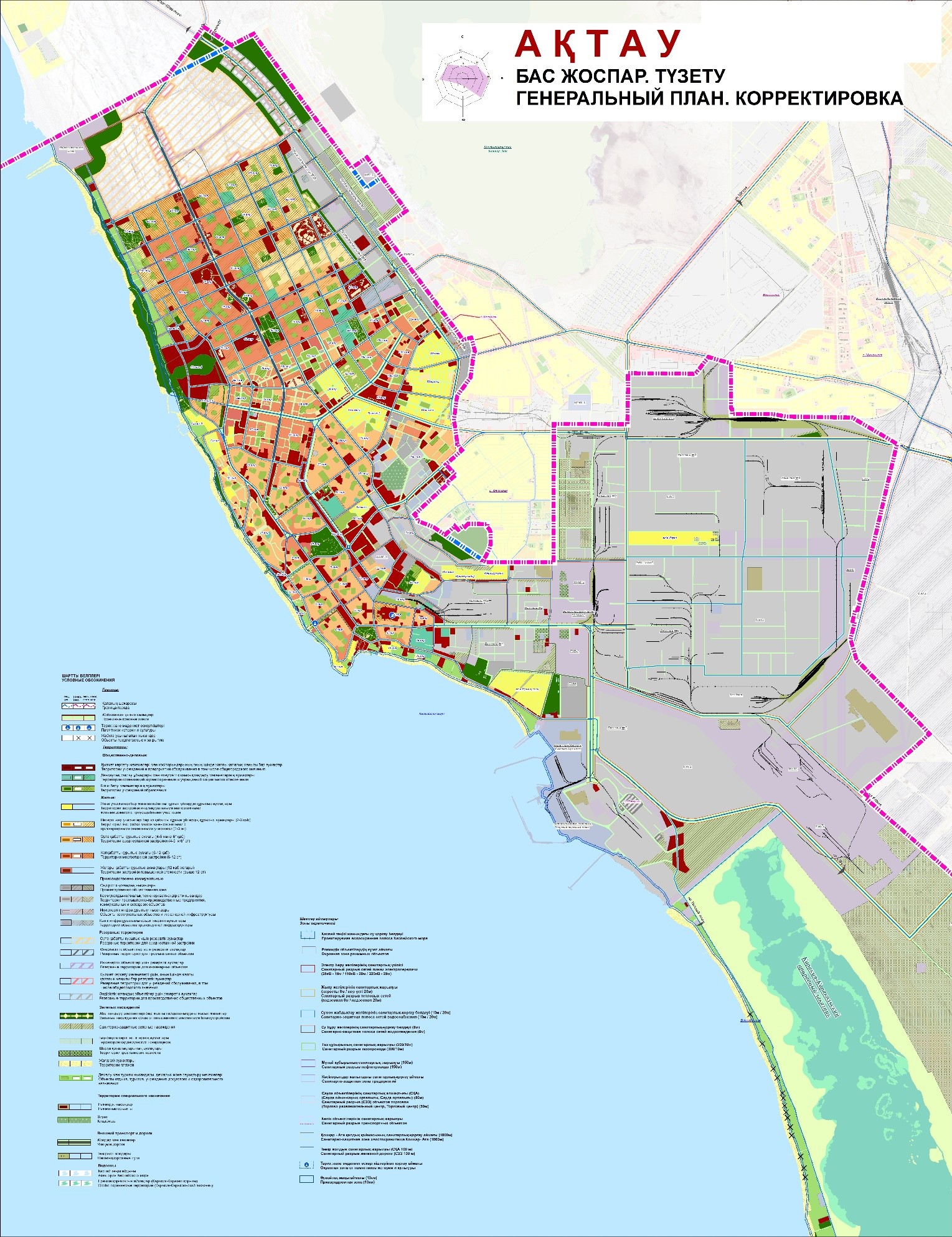 Он разработан на территорию 62,1 квадратных километра в пределах города Актау, с учетом новых административных границ, включающих акваторию Каспийского моря.