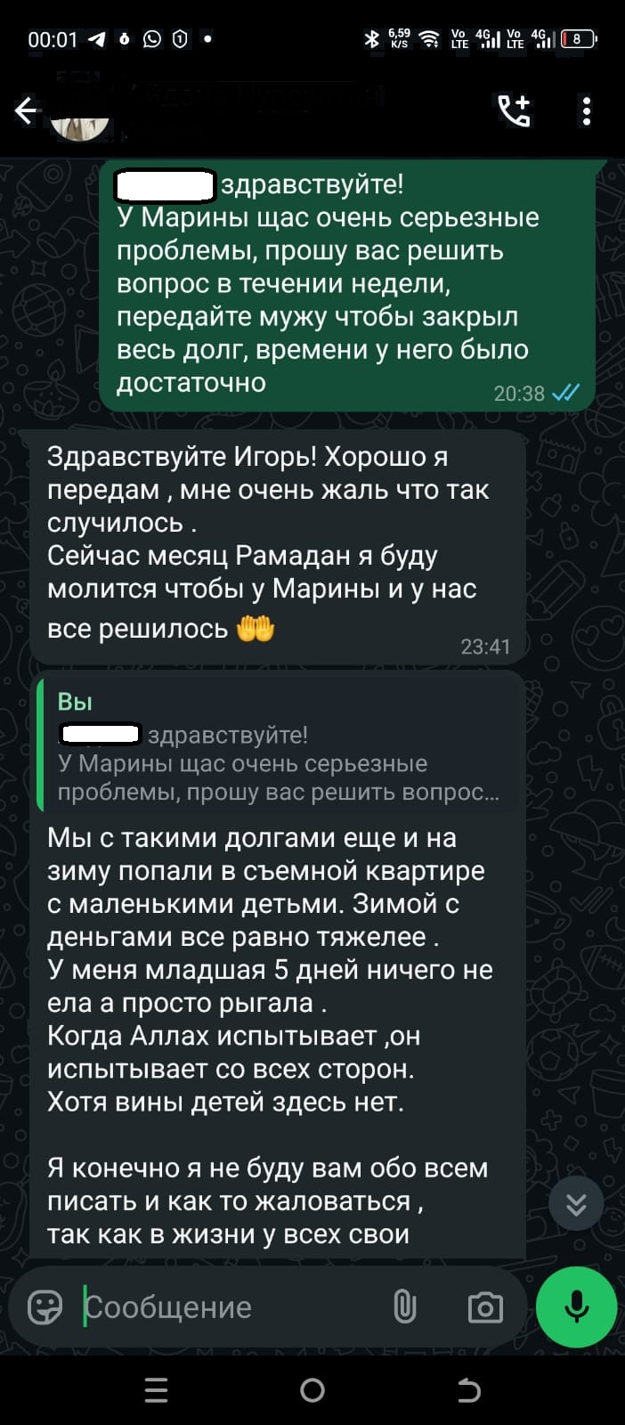 «К.Н. объяснил это тем, что у него из-за предыдущей неправильной сделки арестовали счёт фирмы, и просил подождать неделю. Но и через неделю денег не было. Дочь разговаривала с ним, он ей клятвенно обещал, что все будет хорошо, мол, он не обманет, он человек верующий, и у него дети - грех на душу не может взять. Так кормил обещаниями, а через некоторое время и вовсе перестал выходить на связь», - рассказывает обманутая женщина.