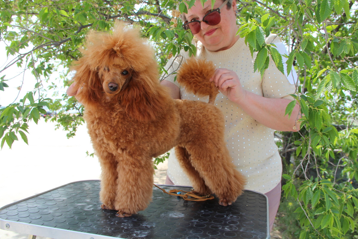 «Мы хотим заниматься шоу-карьерой — все данные для этого есть: хорошее сложение, красивая шерсть, соответствие породным параметрам. Она очень активная, любознательная, любит играть, заниматься, с радостью следит за движениями. Я считаю, что той-пудель — это самая популярная и универсальная порода для городской жизни. Они не линяют, её легко брать с собой, везде пускают. Идеальная собака-компаньон. Начинала я с больших собак — немецкий дог, немецкая и французская овчарки, скотч-терьер. С возрастом мы «мельчаем», наверное, потому что хочется комфорта, уже нет сил на активные тренировки. У меня есть ещё одна собака — мальтипу», — рассказала владелица Светлана.