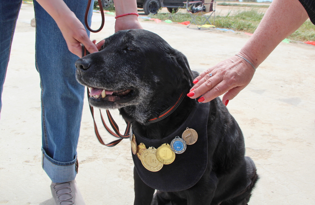 А это настоящий ветеран — 13-летний лабрадор по кличке Бруно. Он участвует в выставках с щенячьего возраста. Бруно — участник многочисленных республиканских и международных выставок, обладатель титулов интер-чемпиона, гранд-чемпиона, мульти-чемпиона. В этот раз он занял почётное первое место в ринге ветеранов.