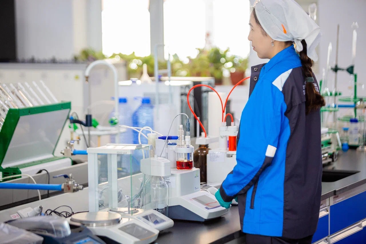Гулшара Турманова рассказала, что работа здесь круглосуточная в 4 смены, потому что лаборатория обеспечивает контроль производственного процесса всего завода. Здесь трудятся 20 лаборантов. Большая часть из них имеет высшее образование и работает со дня основания.
