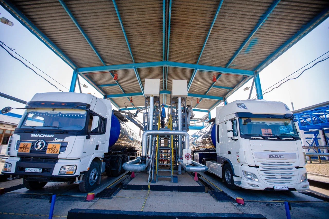 Показав «точку входа» сырья на производство, посмотрим заодно и точку «выхода» готовой продукции. Так, главный технолог «Caspi Bitum» Серик Сыдыков ознакомил нас со станцией автоналива, где только автомобильная наливная эстакада (а есть еще железнодорожная сливо-наливная эстакада) в среднем за час нагружает два битумовоза по 25 тонн каждый. Чтобы минимизировать воздействие на организм работников, здесь используется герметичный налив. Также предусмотрены специальные весы, а в целях безопасности — камеры видеонаблюдения. При выходе все это фиксируется и передается в центр управления контроля.