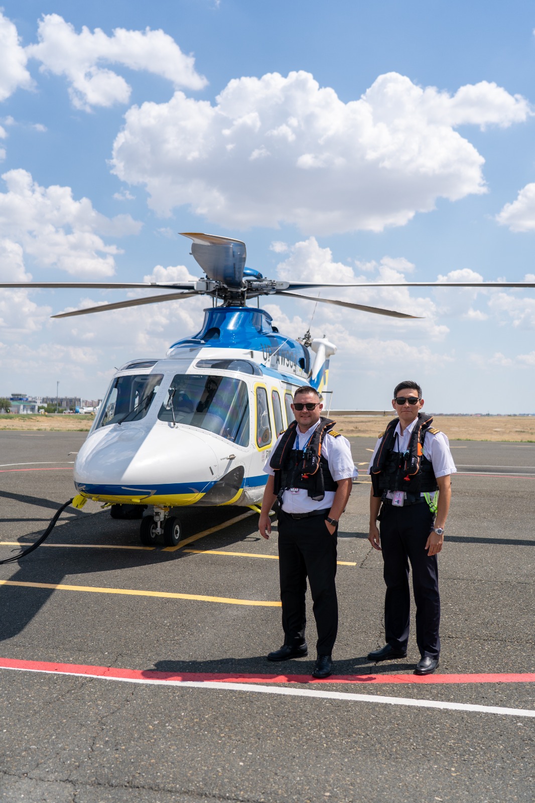Стихию воздуха олицетворяют пилоты. Их основные задачи на Кашагане – вертолетная перевозка персонала между Атырау и островом D, а также медицинская эвакуация в случае чрезвычайных ситуаций. Полеты могут проходить в сложных условиях над Каспийским морем, где размеры посадочных площадок ограничены, а климат часто суров.