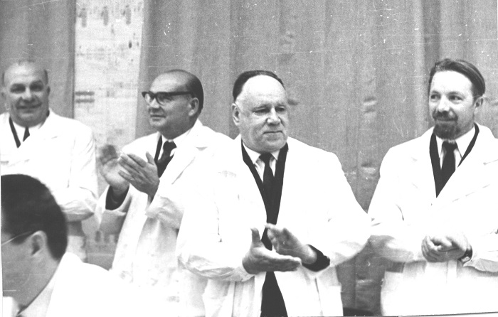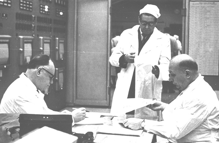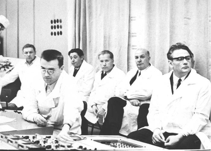 Мамонтов В.Ф., Скориков Н.В., Шведенко И.М. и Баюклин В.Ф. проверяют работу нейтронных каналов.