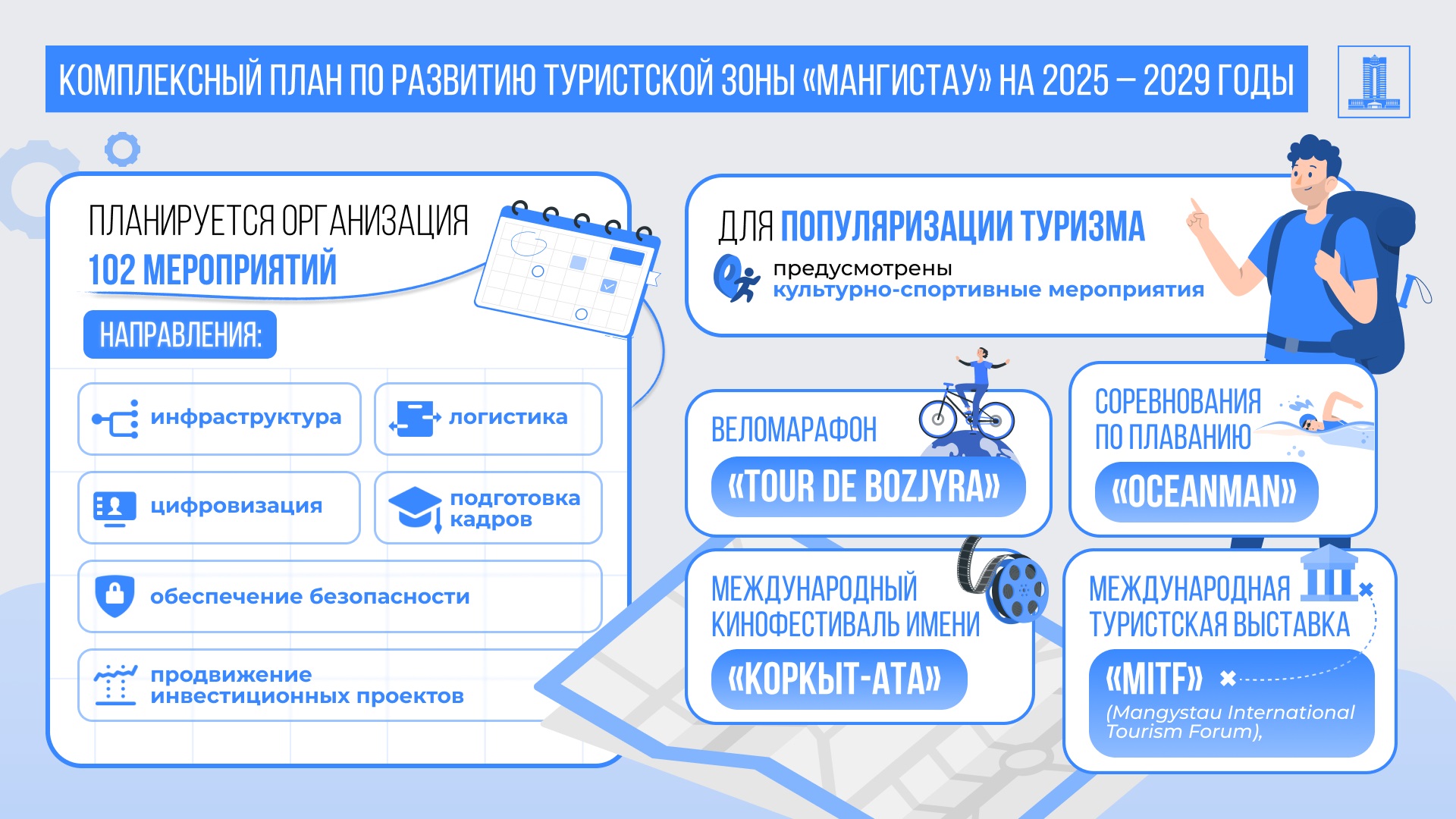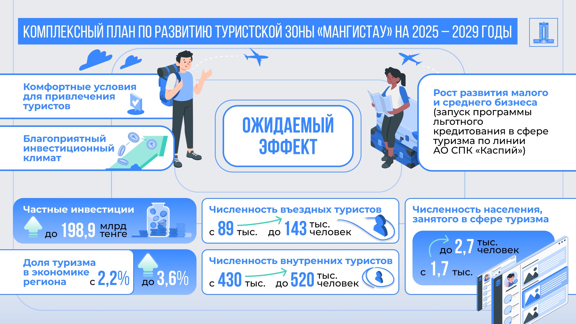 «Комплексный план позволит организовать комфортные условия для привлечения туристов и создать благоприятный инвестиционный климат для дальнейшего развития туристкой зоны. Импульс для дальнейшего роста получит малый и средний бизнес, для субъектов которого Планом предусмотрен запуск программы льготного кредитования в сфере туризма по линии АО СПК «Каспий»», - сообщает Правительство РК.