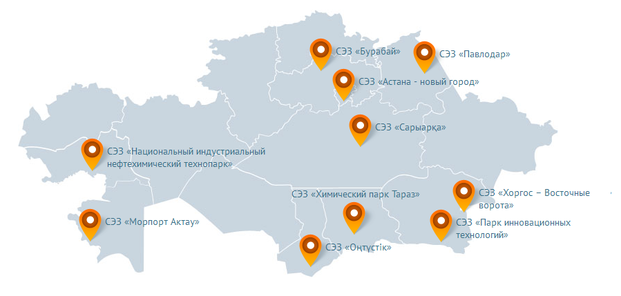 Действующие в Казахстане специальные экономические зоны. Инфографика с сайта business.gov.kz