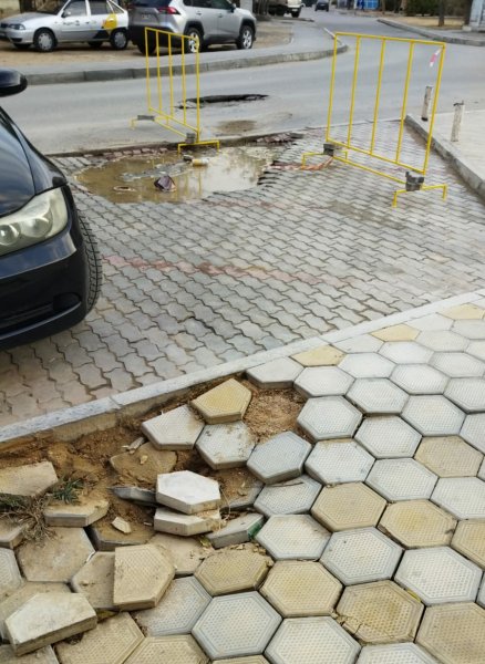 После дождя, как говорят местные автовладельцы, асфальт начал постепенно проваливаться.
