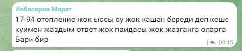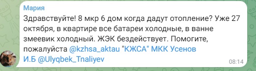 Тепло должны были дать еще 10 дней назад, но до сих пор в telegram-канал акима области продолжают поступать многочисленные жалобы на отсутствие отопления в домах.