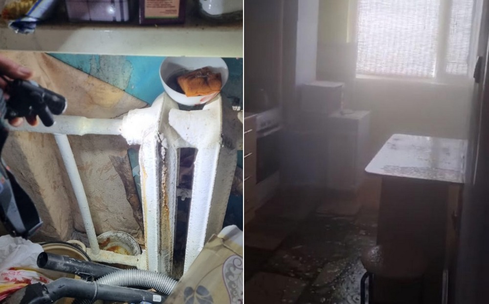 По словам жильцов, вчера днём, 16 декабря, произошёл порыв отопительной системы в квартире №63 на шестом этаже. Затопленными оказались квартиры вплоть по первый этаж. Боковые квартиры тоже были затоплены частично: у кого кухня, у кого зал, у кого спальня.