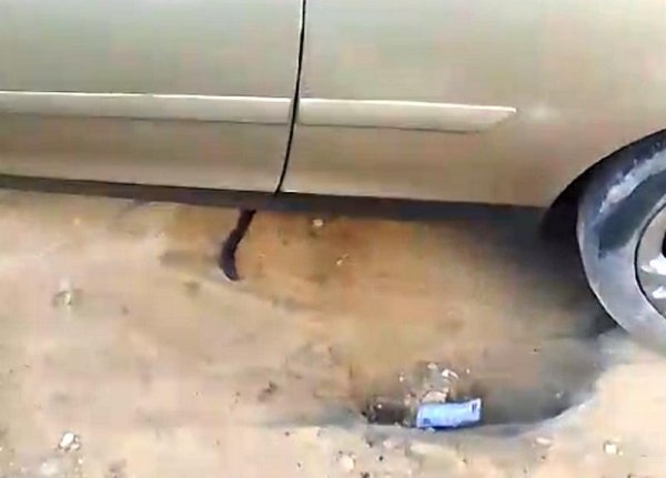 Здесь же, перед домом неподалеку от ямы, по словам жильцов, летом провалилась земля. Там была замечена протечка трубы. Люди своими силами засыпают место песком, но земля проседает дальше. Они просят обратить внимание коммунальщиков и на эту проблему.