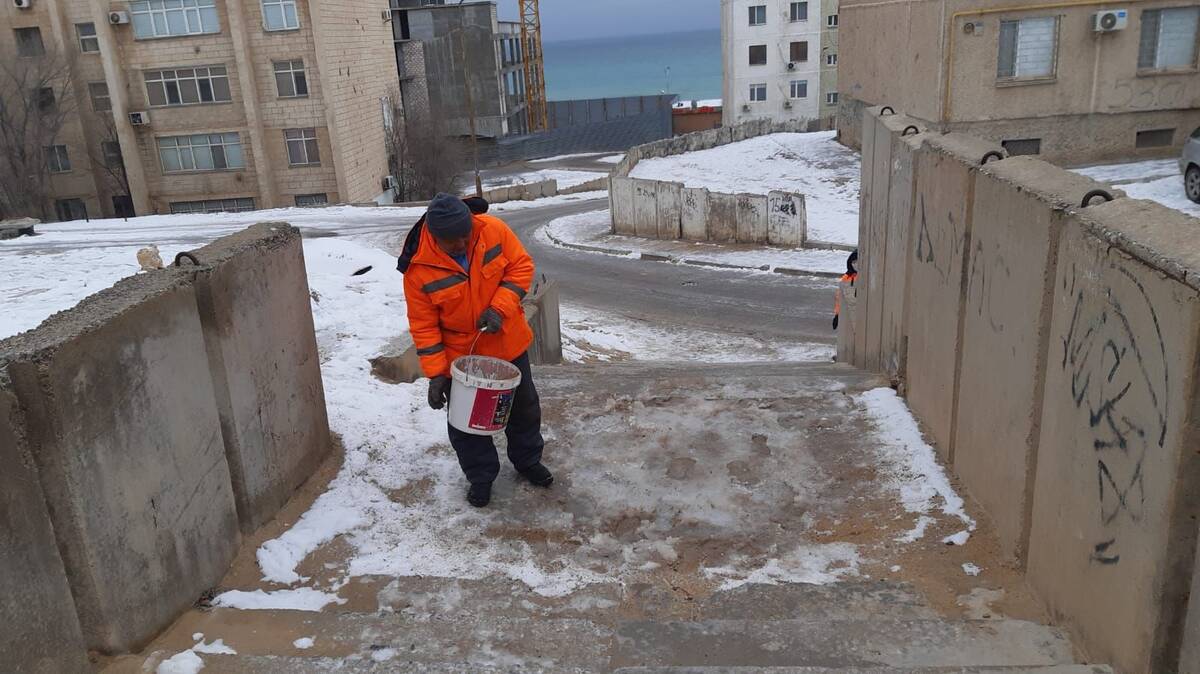 Кроме того, более 200 сотрудников учреждения «Акжол+К» были задействованы в работе по засыпке песком и солью внутри микрорайонных дорог. Сотрудниками подрядной организации проводятся работы по засыпке 4 тонн песчано-соляной смеси на автомобильных и пешеходных дорожках внутри микрорайонов.