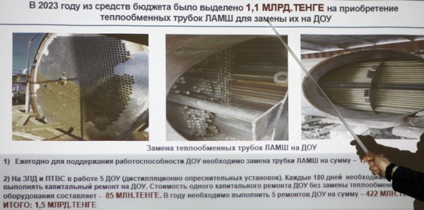 - Ежегодно для поддержания данных теплообменных трубок необходимо более 1 миллиарда тенге для поэтапной замены на всех пяти основных установках. Каждые 180 дней мы должны делать капитальный ремонт. Мы оценили, что в одном финансовом году необходимо не менее 1,5 миллиарда тенге на производство данной ремонтной кампании, - подытожил Кайрат Рахимов.