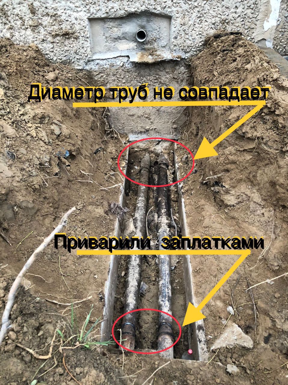 На месте старых труб сегодня, 10 ноября, появились такие же, только большим диаметром, которые рабочие просто приварили заплатками.