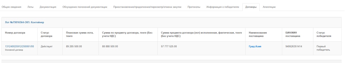 Заказчиком лота выступал Актауский городской отдел жилищно-коммунального хозяйства. Победителем конкурса стал ИП «Град Азия».