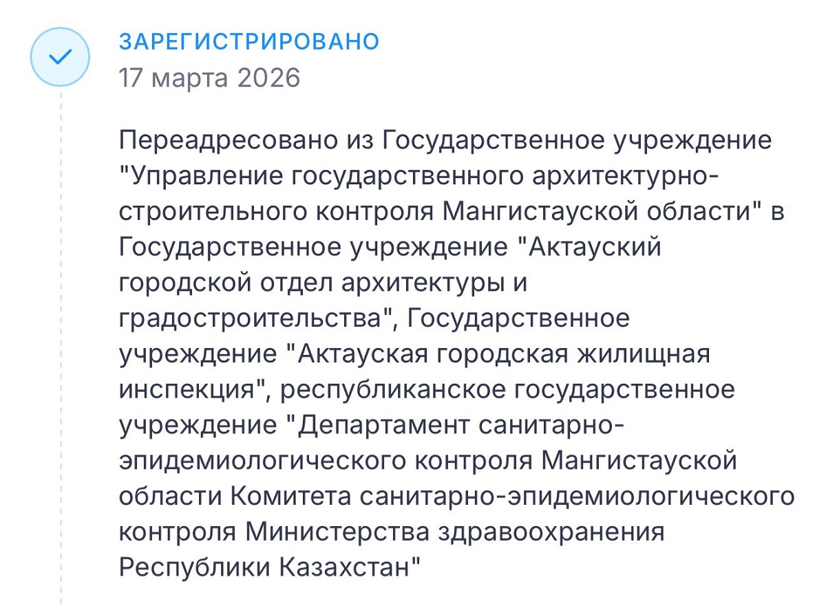 Жильцы рассказывают, что неоднократно обращались в управление государственного архитектурно-строительного контроля Мангистауской области, городскую жилищную инспекцию и городской отдел архитектуры и градостроительства», однако в ответ получали лишь формальные отписки.