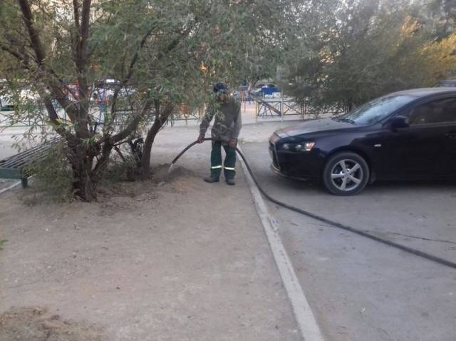 задействованы 38 водовозов емкостью шесть кубических метров и 16 машин емкостью 10 кубических метров. На полив зеленых насаждений и озеленение Актау из бюджета выделено 596 миллионов тенге. Это на 109 миллионов больше, чем в 2016 году.