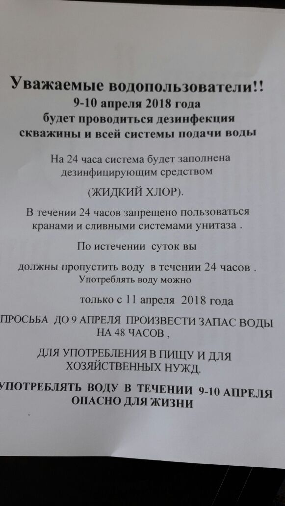 - Никогда при дезинфекции жидкий хлор не используется в таком количестве, чтобы представлять опасность здоровью и жизни людей. Информация ложная. Нам звонят горожане, мы всем объясняем, что никакой опасности вода 9-10 апреля и в другие дни не представляет, - отметили в ТОО «Батыс су арнасы».