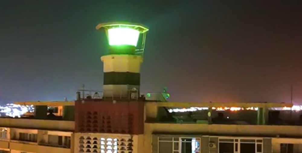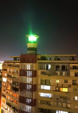 Актауский городской акимат поделился красочным видео маяка, установленного на крыше высотного дома №9 в 4 микрорайоне.