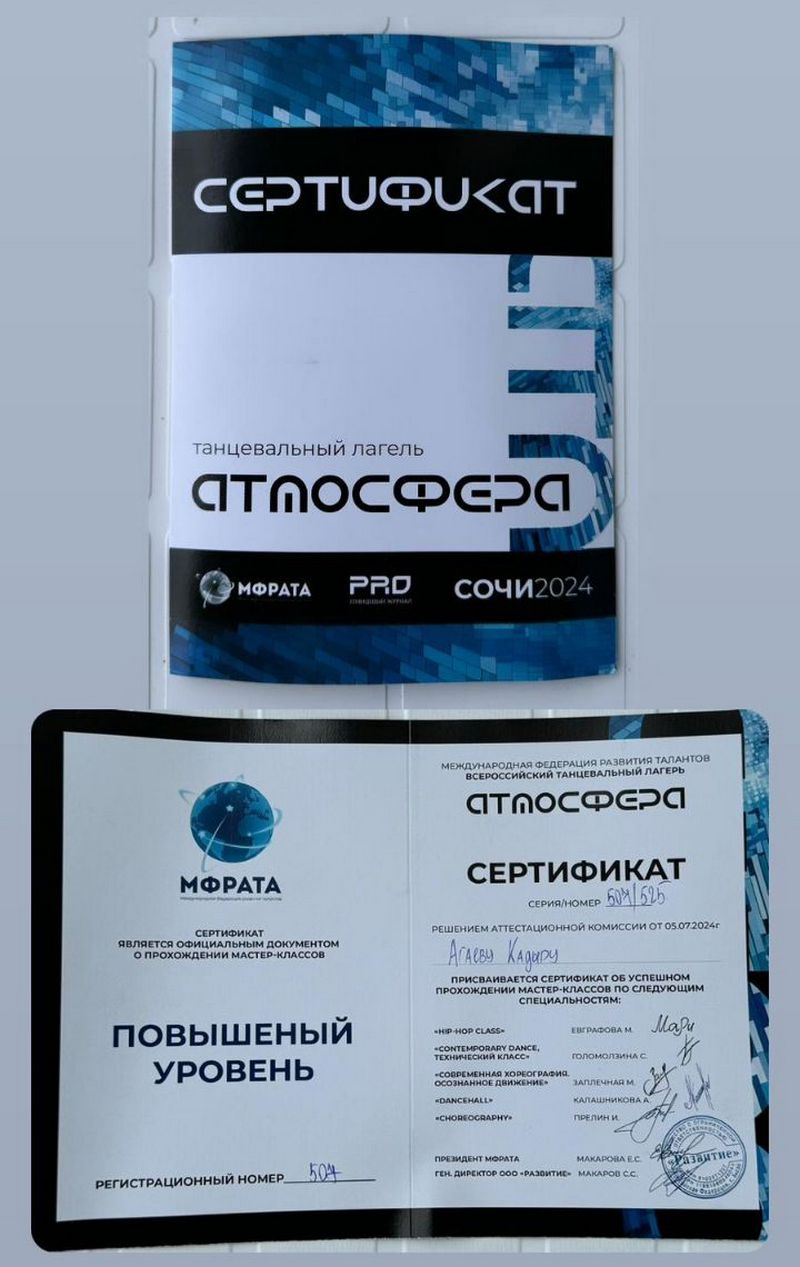 Мастер-классы по различным видам хореографии проводили ведущие хореографы России. После каждый член нашей команды получил сертификат повышенного уровня.