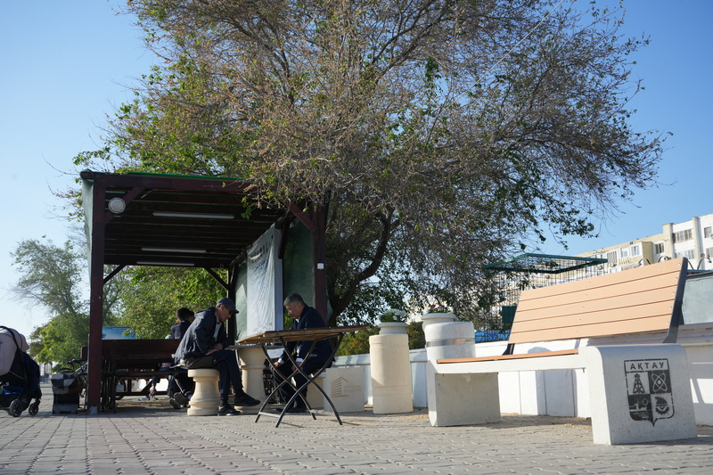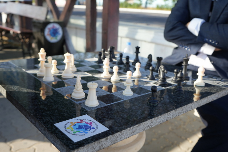 Организатор инициативы – руководитель фонда «Мы – за спорт, против наркотиков» Роман Уразимбетов. Он рассказал, что совместно со строительной компанией «Limestone mangystau» был сделан подарок городу – специальный шахматный стол из натурального камня местного производства. Пока для игр используются пластмассовые фигурки, позже их заменят на каменные.