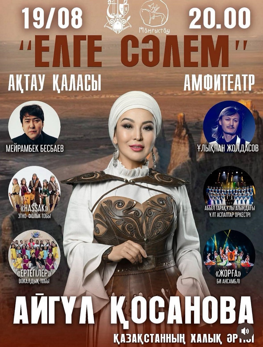 На сцене амфитеатра завтра, 19 августа, состоится творческий концерт народной артистки Республики Казахстан Айгуль Косановой под названием «Елге сәлем».