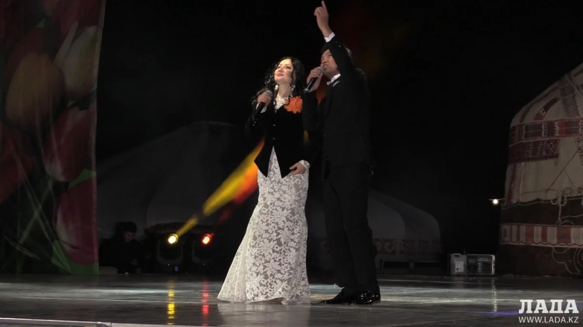 Праздничный концерт на набережной завершился выступлением казахстанского дуэта «Жанболат пен Жазира»
