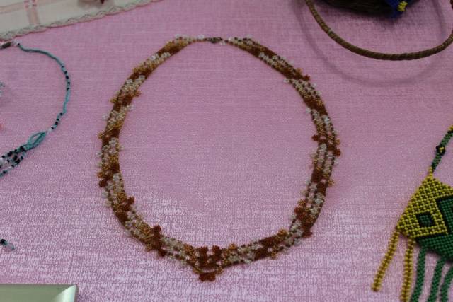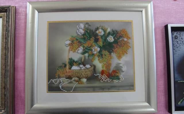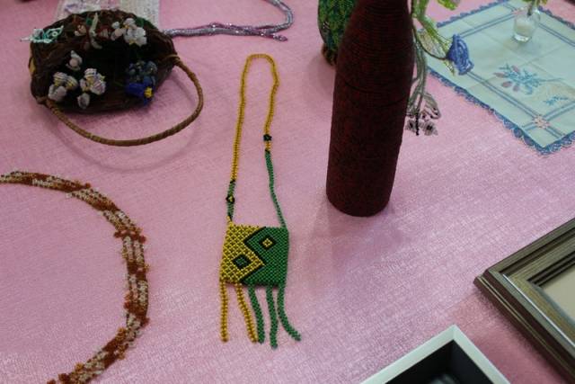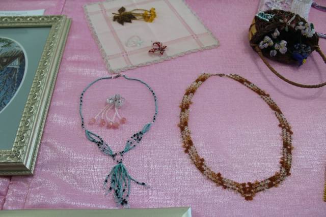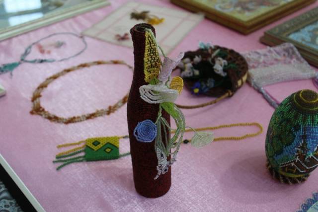 На выставке были представлены работы, выполненные в разных техниках: вышивка бисером, крестиком, крючком, гладью и бисероплетение.