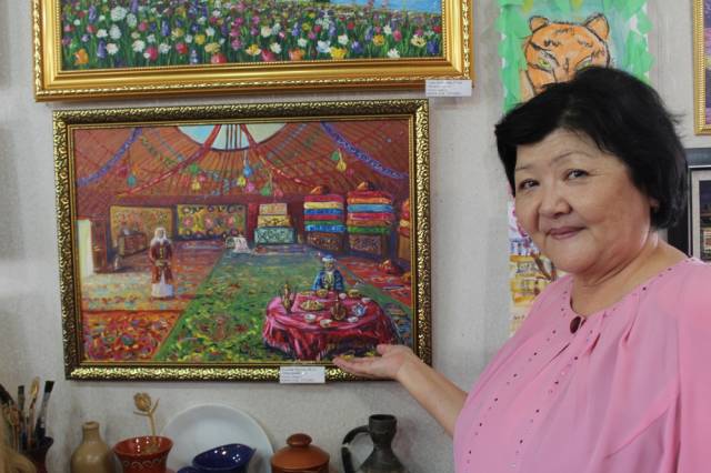 Гульнар Айтуева занимается в «Пристани» почти пять лет. Ученица студии рассказала, что свои работы пишет для себя или дарит родственникам.