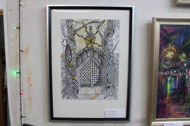 Любимая работа Юлии Гладилиной — «Ворота в Хоббитанию». Она выполнена в технике зентангл — это способ создания графических изображений с помощью повторяющихся орнаментов. Рисунок наносится гелевой ручкой. Рисование Юлия сравнивает с медитацией.