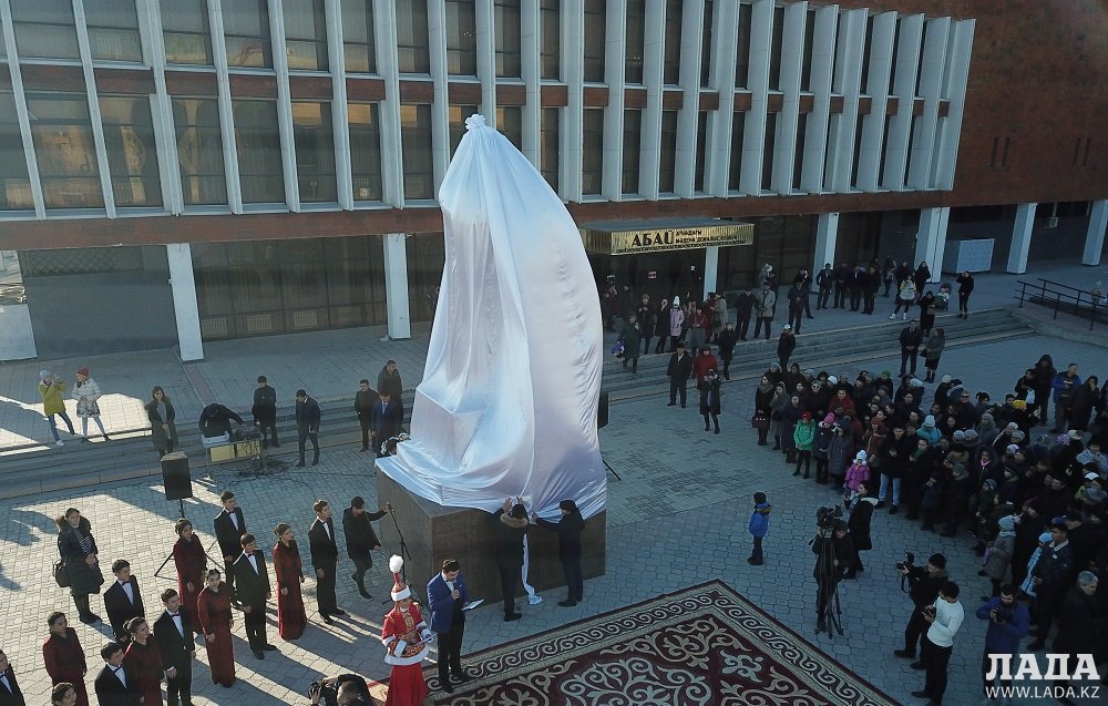 Его установили перед зданием культурно-досугового комплекса имени Абая.