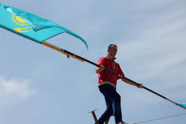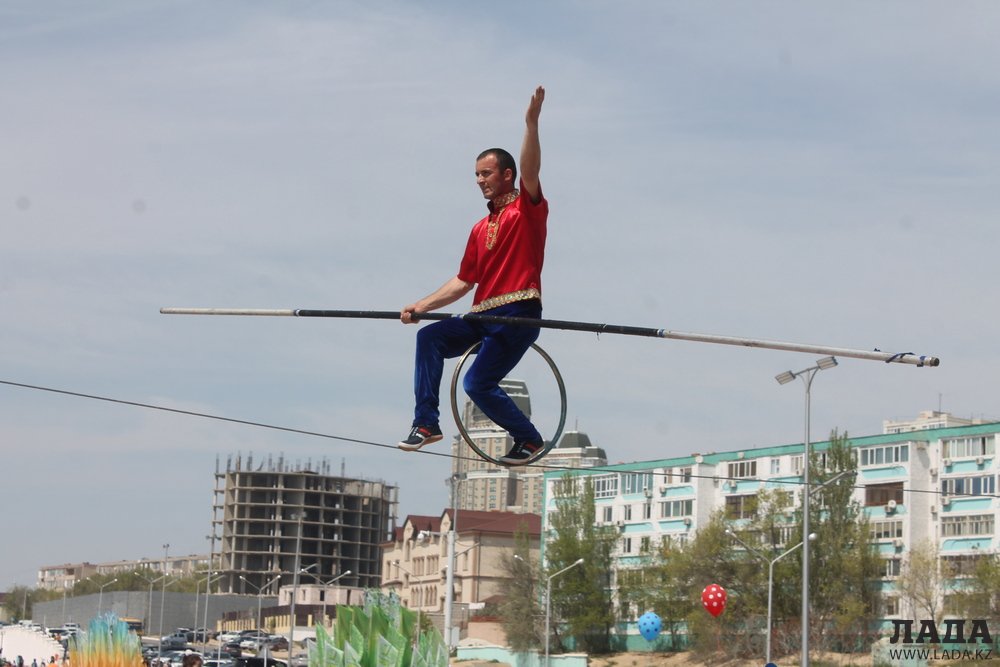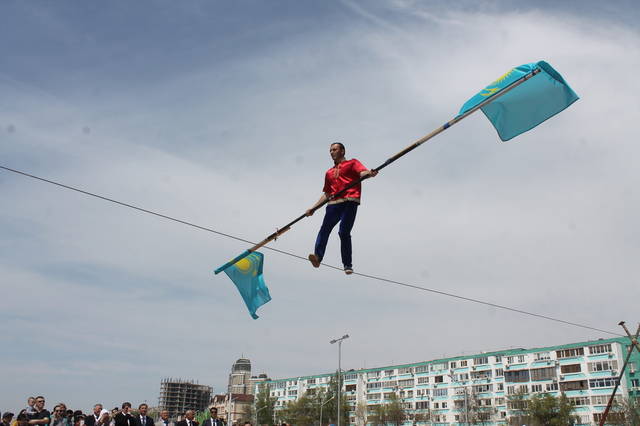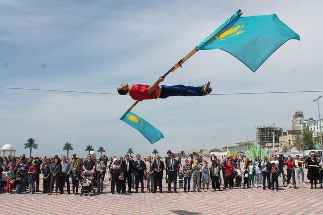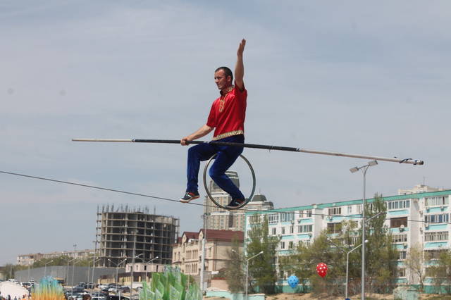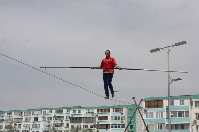 В честь празднования Дня единства народа Казахстана на набережной 15 микрорайона прошло показательное выступление коллектива «Дагестанские канатоходцы». Жители Актау с восхищением наблюдали за выступлением солиста Виталия Касымова.