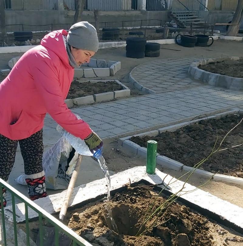Инициаторами озеленения стали жильцы дома №41 в 5 микрорайоне, а поводом стал весенний праздник Наурыз.