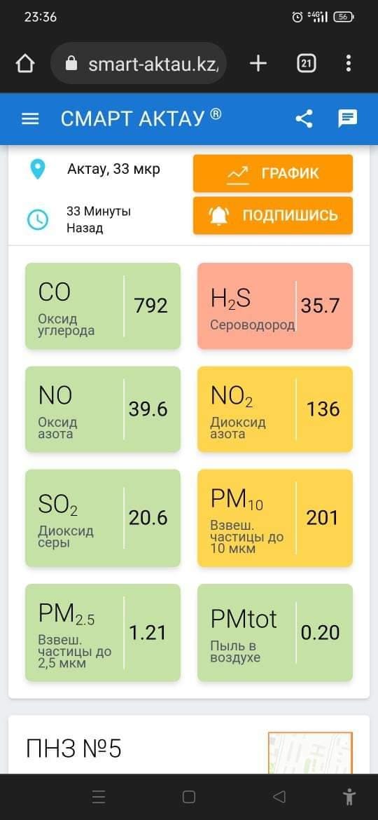 - До полуночи наблюдал за показаниями. Концентрация сероводорода составляла 35 мкг/м3, что в четыре раза больше предельно допустимой концентрации. Как можно узнать «откуда ветер надувает». Поднимите вопрос, пожалуйста, - обратился житель Актау.