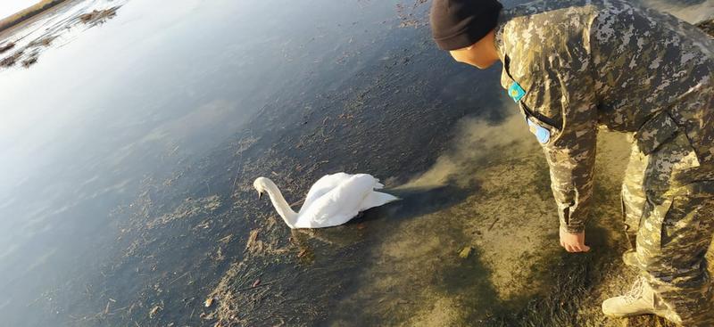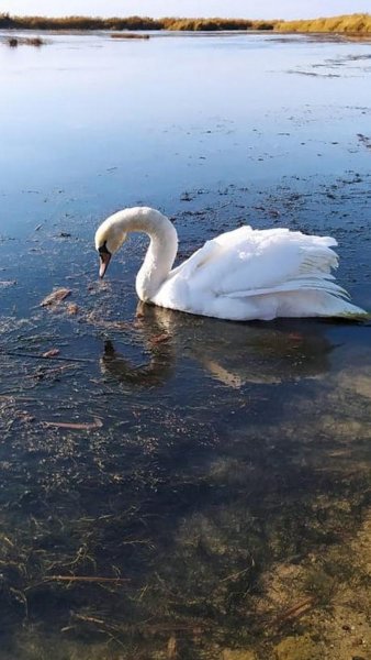 Лебедь пока плавает близ берега, и сотрудники инспекции лесного хозяйства будут посменно дежурить и наблюдать за его состоянием.