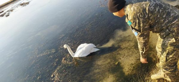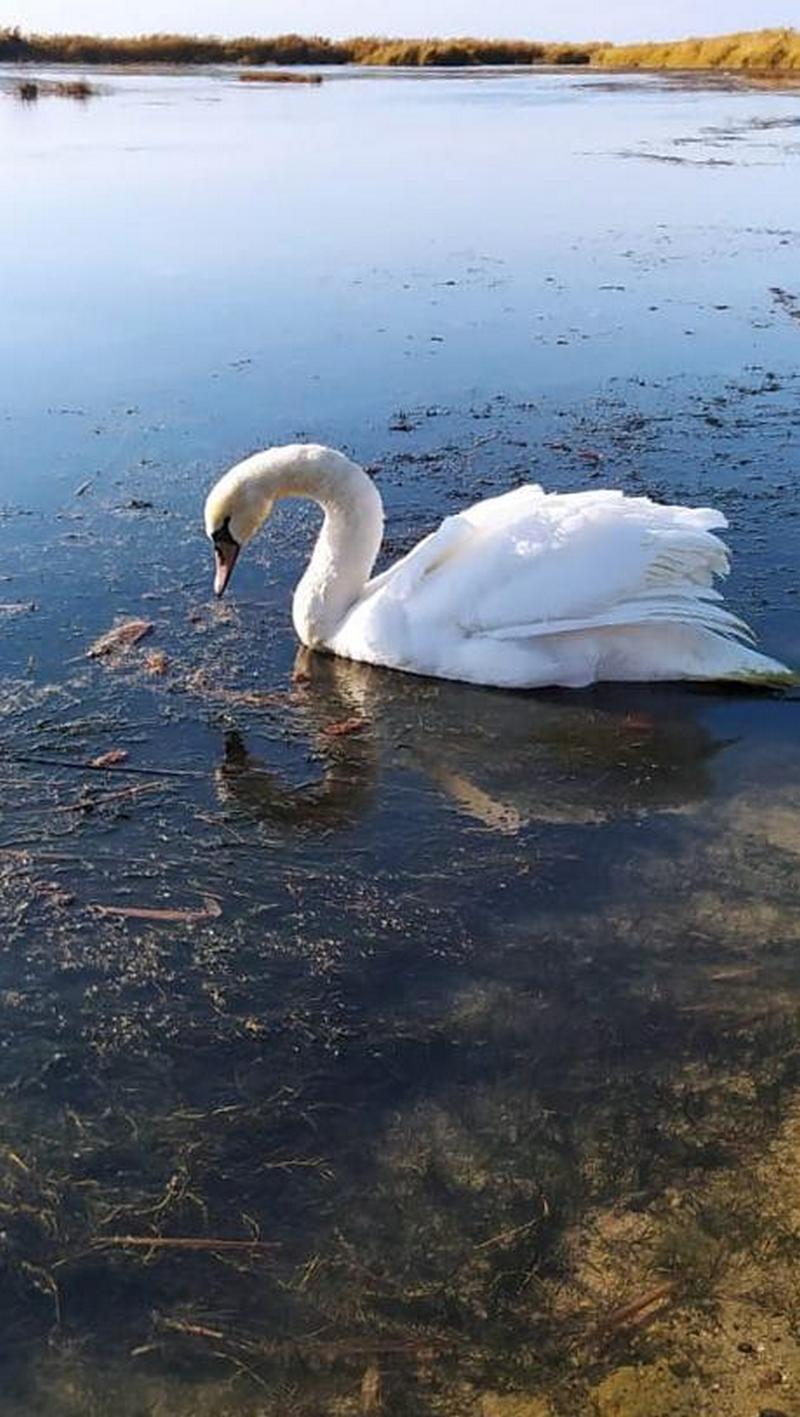 Напомним, застрявшего в соре лебедя