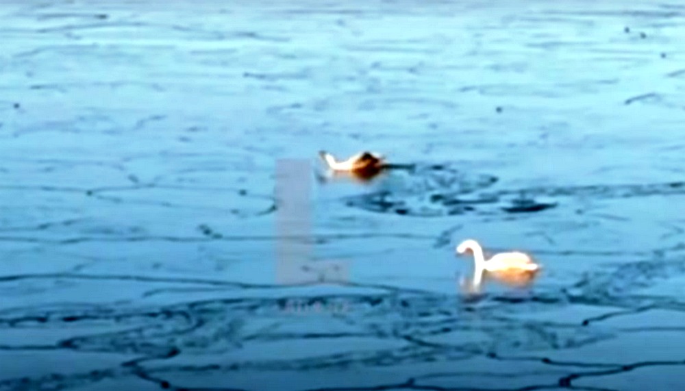 Как уверяют местные жители, лебедям в районе «Теплого пляжа» создаёт преграду для передвижения образовавшийся лёд.