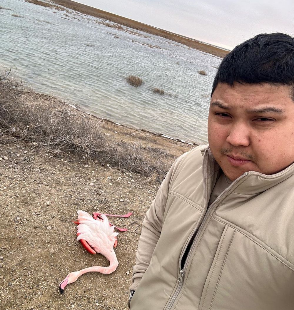На мертвого розового фламинго наткнулся сегодня, 26 февраля, местный блогер Азамат Сарсенбаев.