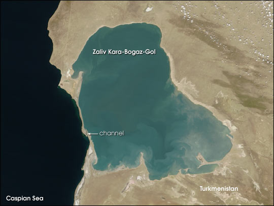 Обзор залива Кара-Богаз-Гол // Фото: earthobservatory.nasa.gov
