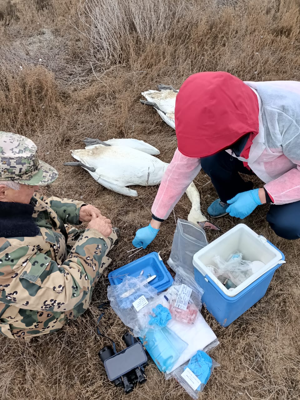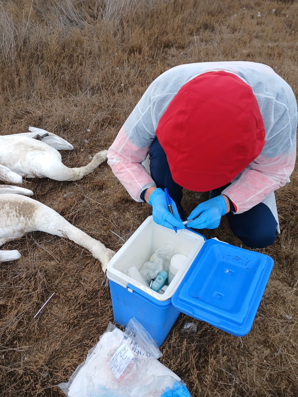 Экологи отметили, что 26 декабря старший научный сотрудник лаборатории экологии вирусов ТОО «Научно-производственный центр микробиологии и вирусологии» Ермухаммет Касымбеков проводит соответствующие лабораторные работы по изучению проб с туш погибших лебедей.