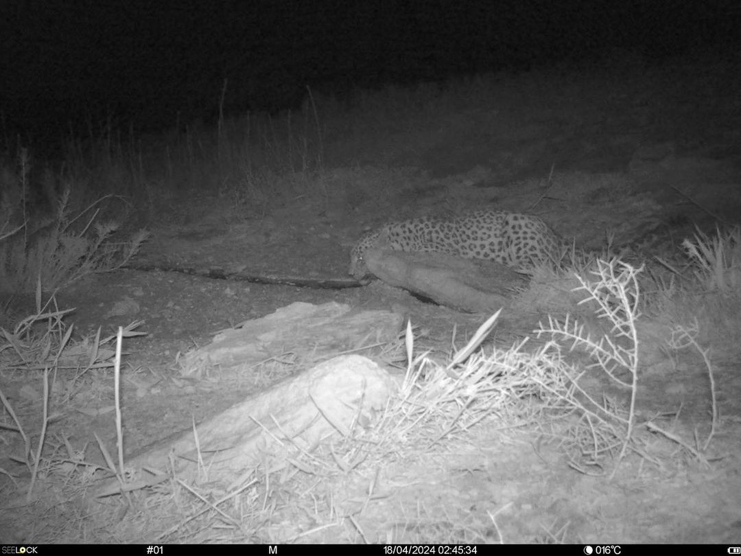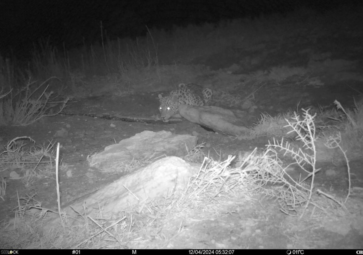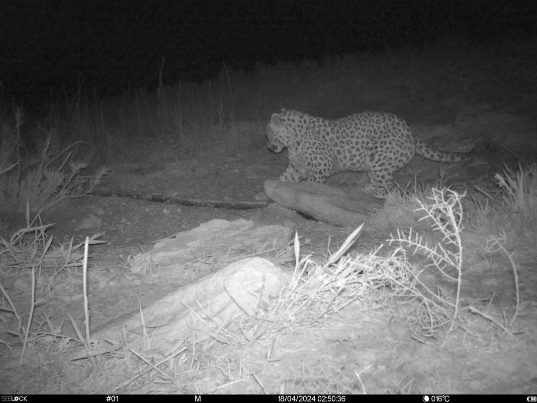 Ночные кадры редкого переднеазиатского леопарда (кавказский барс) попали в объективы фотоловушки Устюртского заповедника.